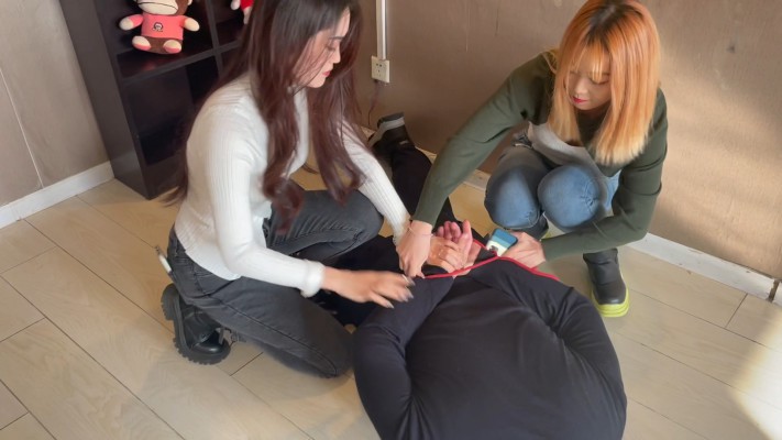内容:紫涵见闺蜜元元最近一直闷闷不乐,便上前询问其缘由。元元阐述是因为被渣男男友抛弃自己心情很低落,紫涵告诉元元这种渣男就该给他约出来好好教训一顿甚至废了他,让他以后都无法再渣别的女孩。可是元元根本不会如何废掉男人,就在紫涵准备教她的时候刚好一个不长眼的胖色男上前搭讪,紫涵见状连忙小声与元元商定,今天就用这个倒霉蛋来教她如何彻底踢废一个男人,于是她们。。。。。。