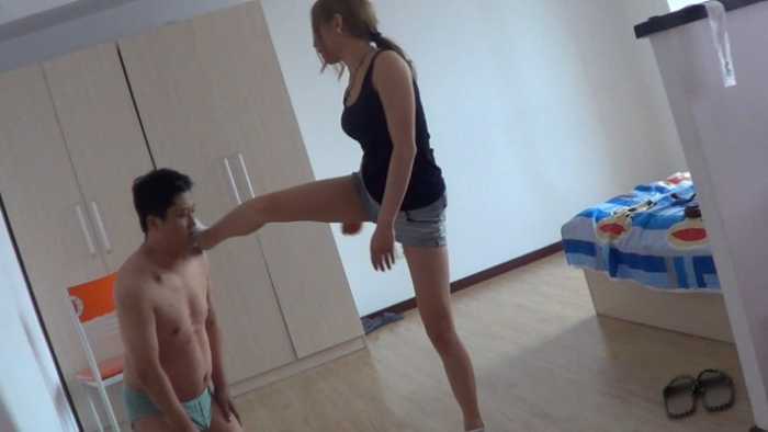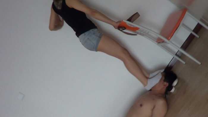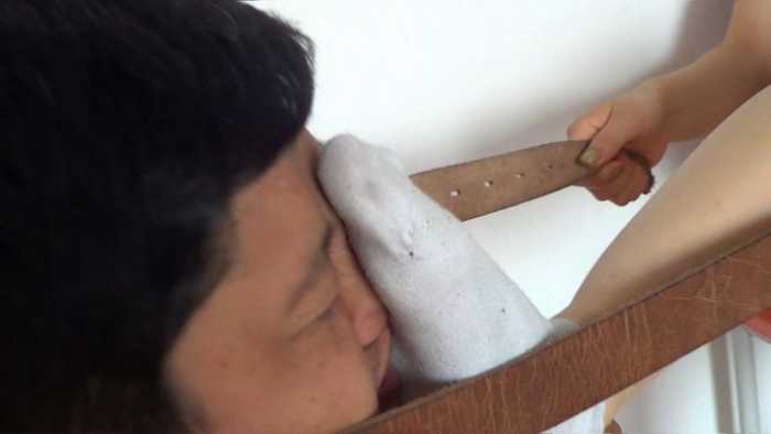 强迫闻臭袜子,踩踏,全体重踩脸,皮带抽,耳光羞辱