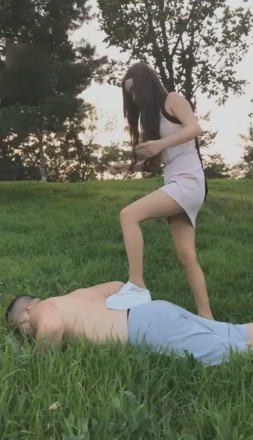 冷柔精彩户外爬行比赛遛狗