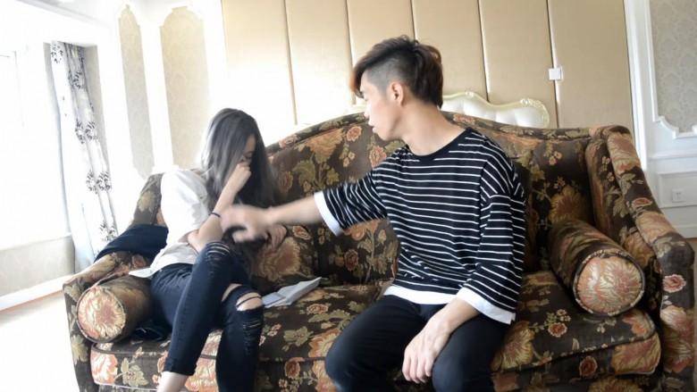 ⑦女友哭得非常伤心,男友还是决意要离开她。她知道男友喜欢脚,平时也很少满足他,现在她哭着用脚诱惑男友恋足,想借此让他留下。