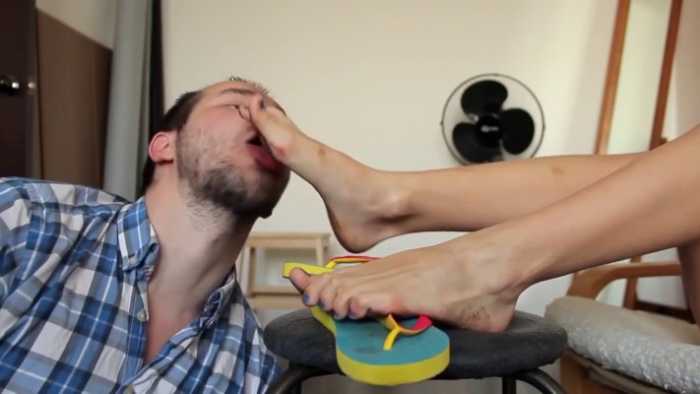 年轻小美女人字拖脏脚羞辱虐待男奴 bf56189