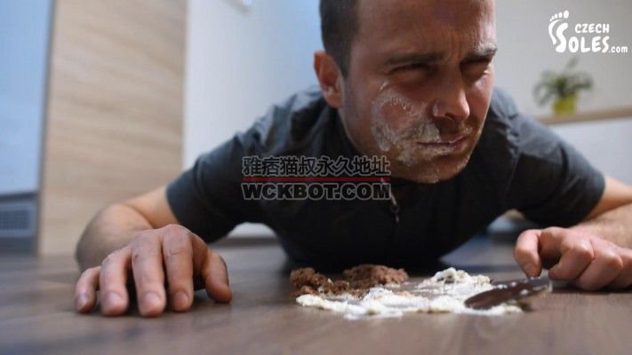 贱狗跪地舔食可爱小美女踩烂的蛋糕!鞋底和脚趾缝里的全舔净!O-210705-5