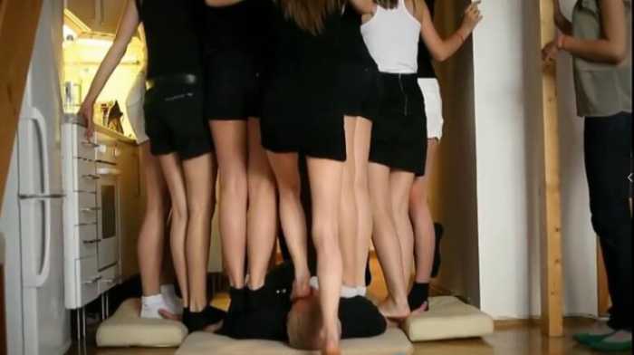 被这么多美女同时踩着是什么感觉,踩头那个超漂亮 bf22131