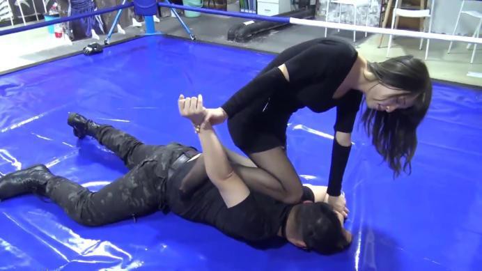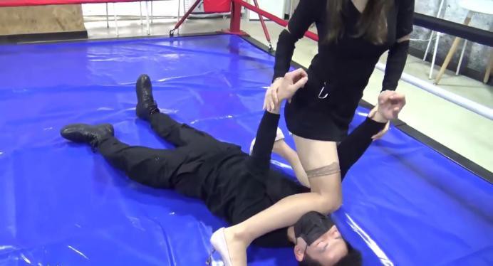 黑丝高跟美女格斗高手被上层安排和几位拳击高手格斗,目的是借着这个名义出掉叛变者。美女一开始向对手示弱使其放松警惕,然后突然拳击把他打倒在地,用黑丝大腿固定住头部,再用反关节技术掰断对方的肩关节和踝关节使其不能逃脱,在慢慢用自己黑丝袜大腿慢慢跪杀。这一招对前面几名高手十分有效。但当最后最厉害的拳击手上场后,美女针对性地拖下来束脚的高跟,换上了肉色丝袜,使出全力用肉丝大腿固定住他的躯干,再把他的手脚关节掰断,然后从容缓慢地伸出肉丝大腿缠绕他的脖子被残忍绞死。