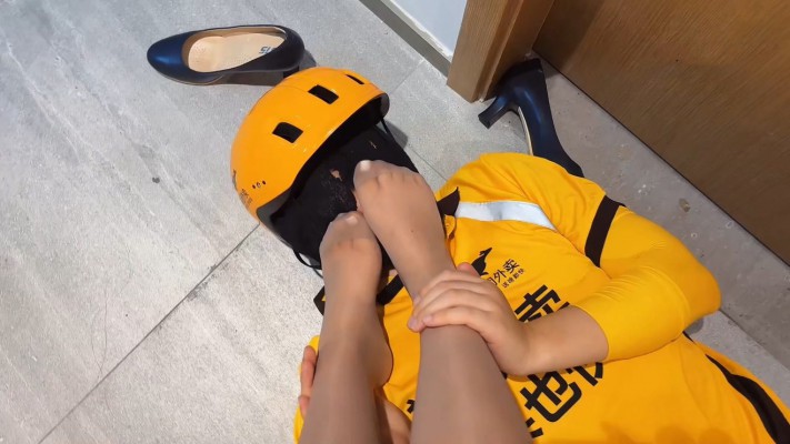 外卖小哥彻底沦为空姐的脚奴,窝在空姐的臭丝袜脚下舔丝袜脚