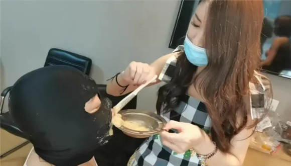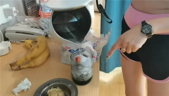 视频开始前,先用胶带封住食物30分钟后开始的拍摄,开始时候,用原味来泡水。内容强制的脚喂食,喂食后踩肚子