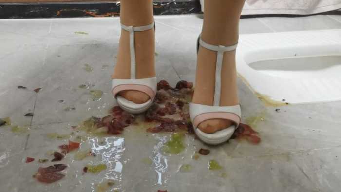 定制剧情,室内卫生间场景,将葡萄塞入高跟鞋内用脚在鞋子里面碾烂,将葡萄用丝袜踩,用大脚趾在鞋内一个个压扁,用鞋跟戳烂葡萄,最后把剩下的葡萄倒在地上,一顿狂踩。脱下高跟鞋,展示被葡萄汁水浸湿的丝袜